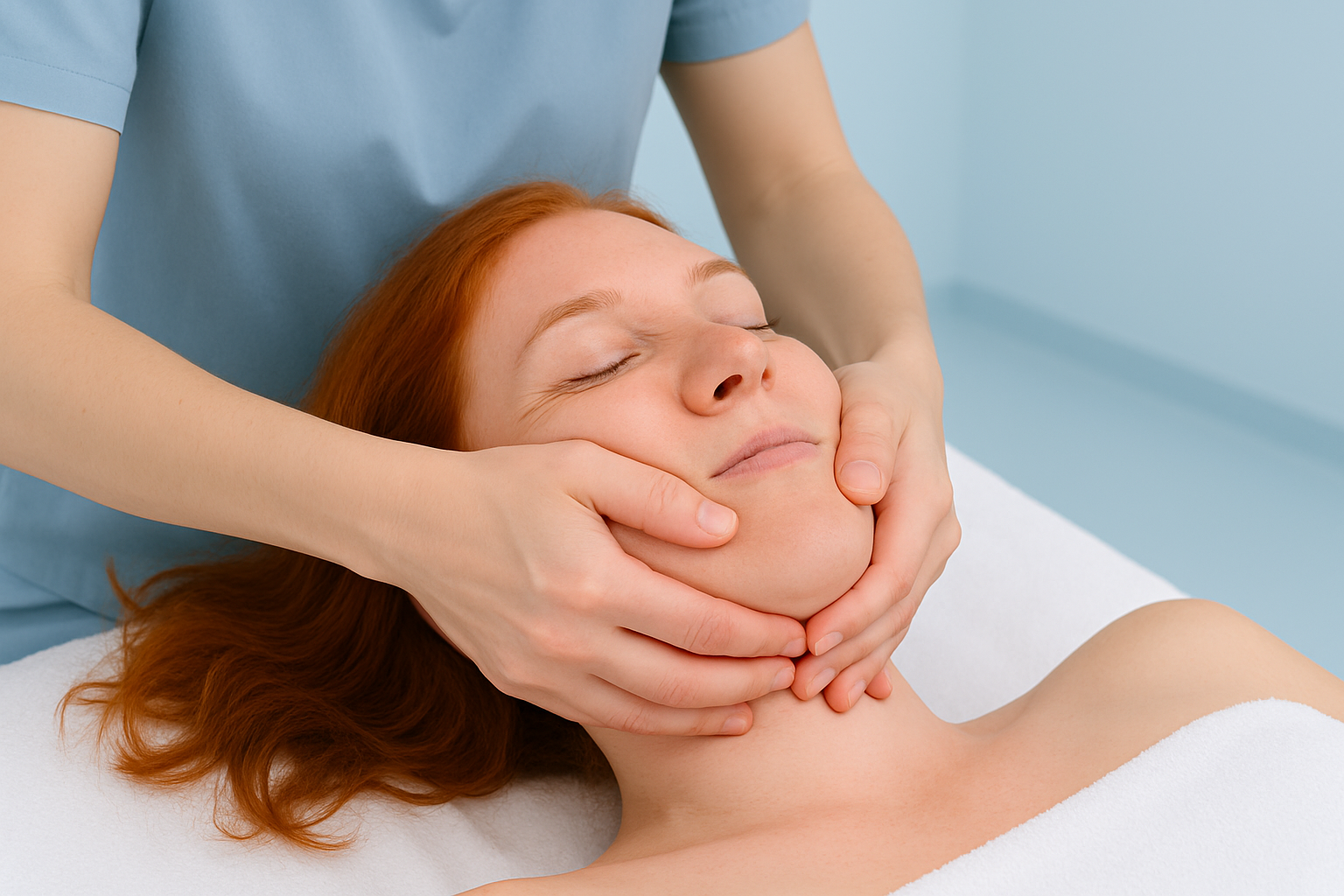 (Articulación temporomandibular) Tratamiento del dolor y la disfunción mandibular, mejorando la movilidad, la masticación y la relajación muscular facial.